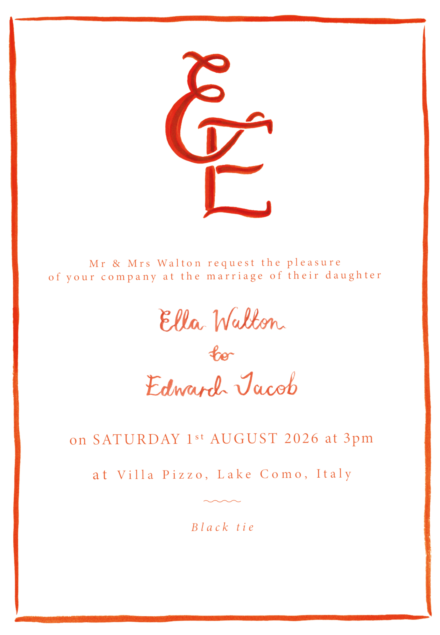 Ella and Ed cordially invite you to celebrate their marriage during their wedding weekend.